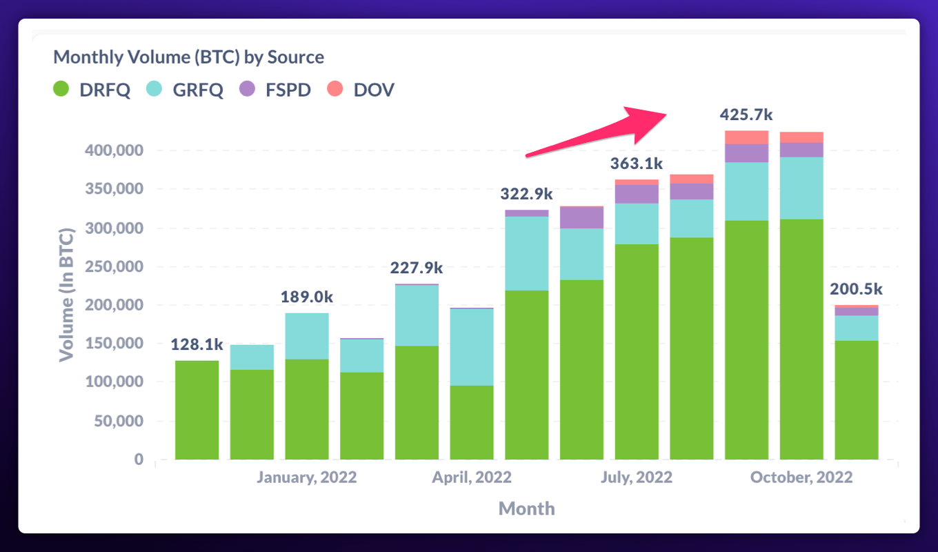 While we were excited about the growth potential of our FTX partnership, it was a new offering and therefore a small contributor (13%) to our revenue. In the grand scheme of things, this revenue opportunity can be earned back given several new exchange partnerships (Bybit, BitMEX and more) that are going live, with many others in the pipeline. Paradigm had excellent product-market fit before FTX and that continues to this day. It is true that though small, FTX was our fastest growing venue. However, if you look closely (chart below), even without FTX volumes, our business continues its growth trajectory with new all-time highs in 5 out of the 6 previous months! 🔥