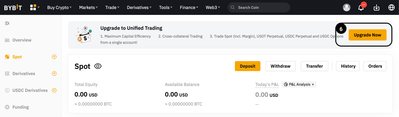 Go to your Spot Wallet and Upgrade to Unified Trading