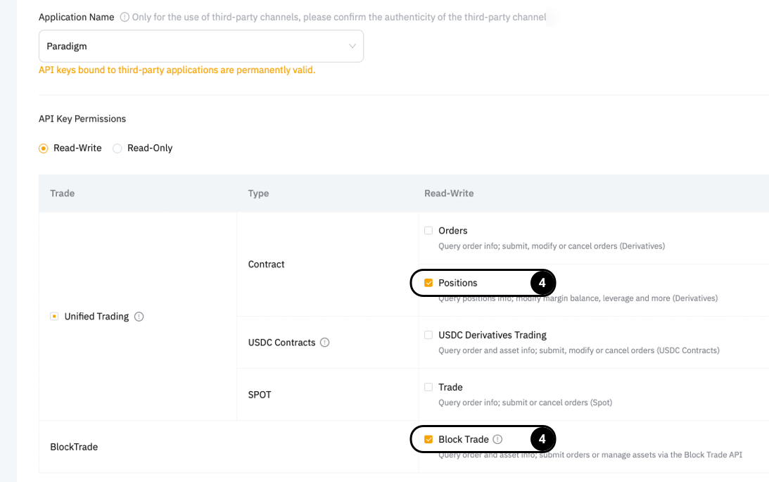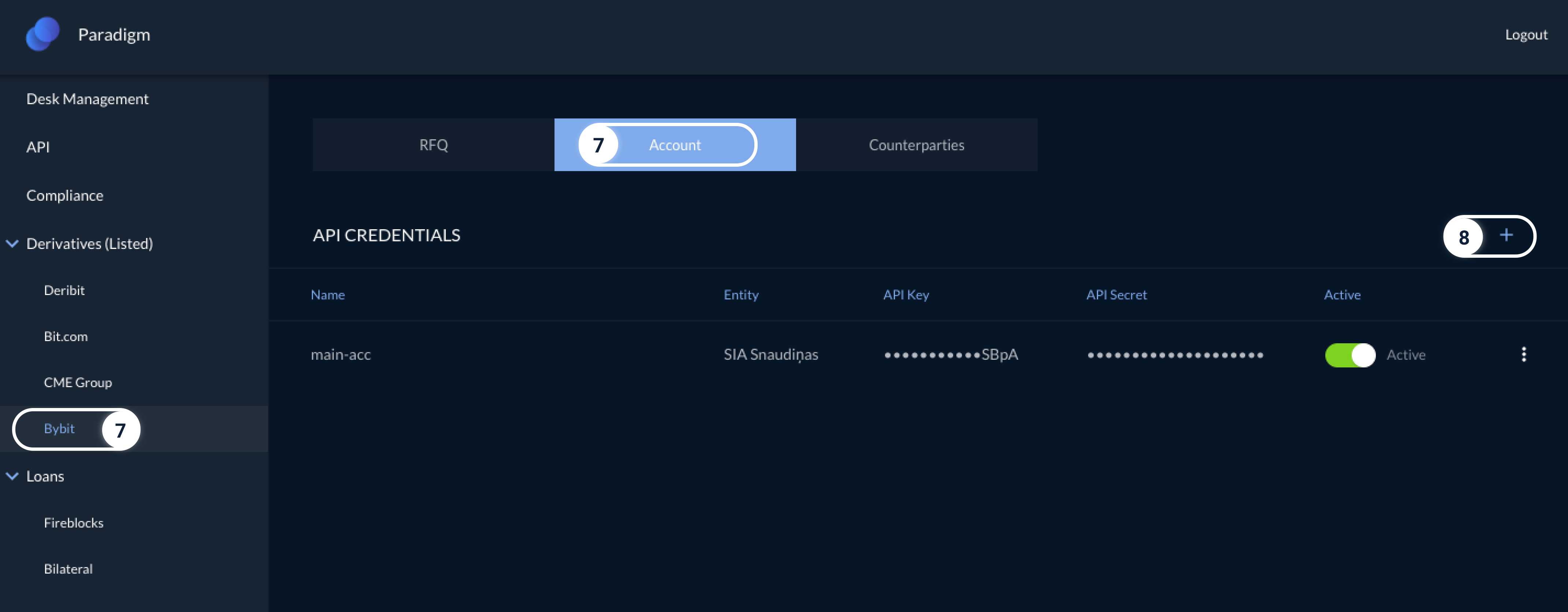 On your Paradigm Dashboard, Select Account tab under Derivatives (Listed) → Bybit