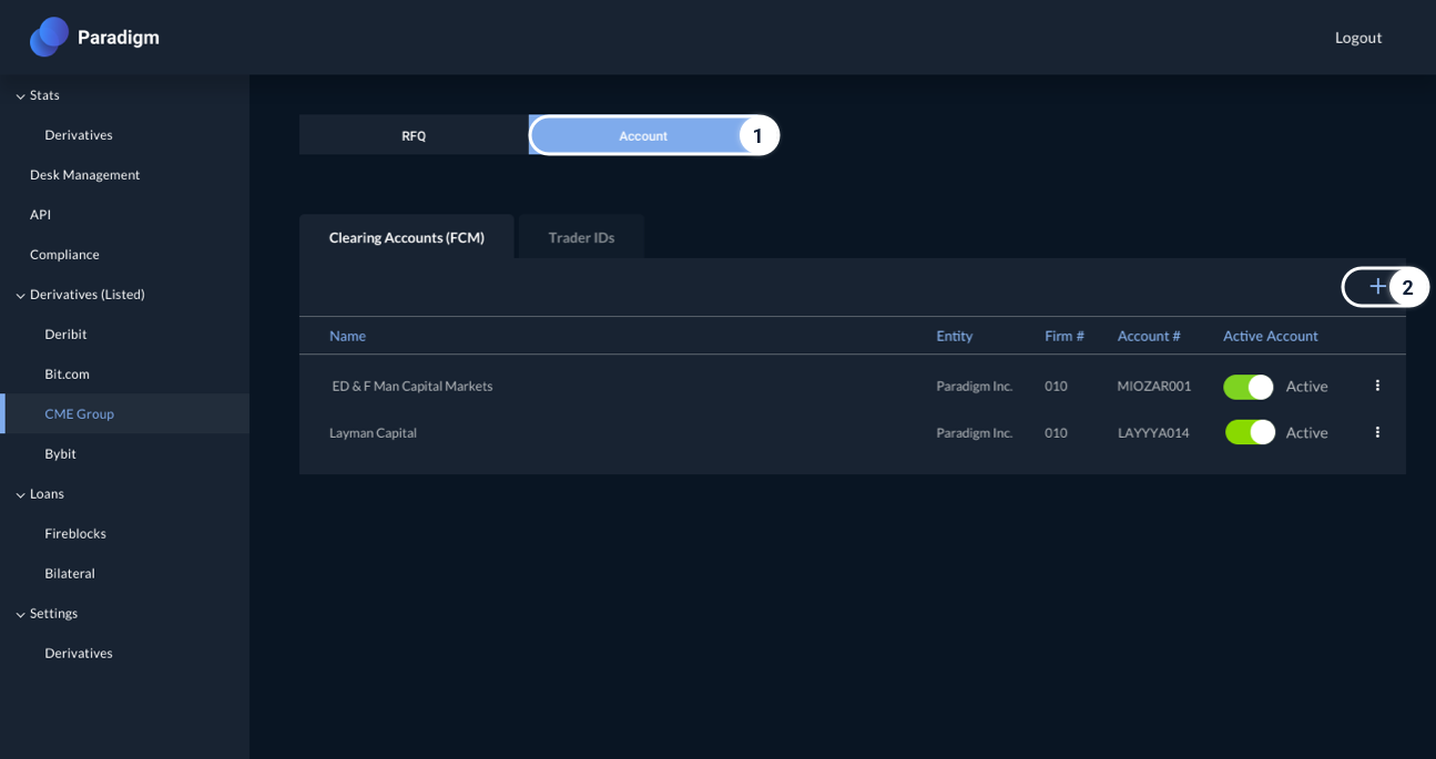 On your Paradigm Dashboard, select Account tab under Derivatives (Listed) → CME Group