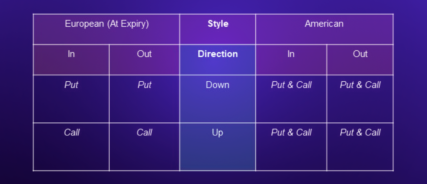 Meaning that if you were to trade a call struck at 100 1yr out, you would pay 3.977%. The avid readers amongst you will remember the table below. The remainder of this article will focus on the European barrier style (the barrier is only observed at expiry). For those of you who have committed the unforgivable sin of not having read the first piece, here’s the link.