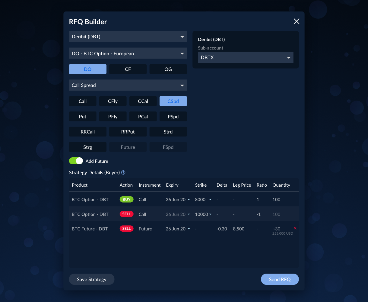 Today, we are very excited to launch our new RFQ builder that should further simplify an institutional traders’ daily workflows!