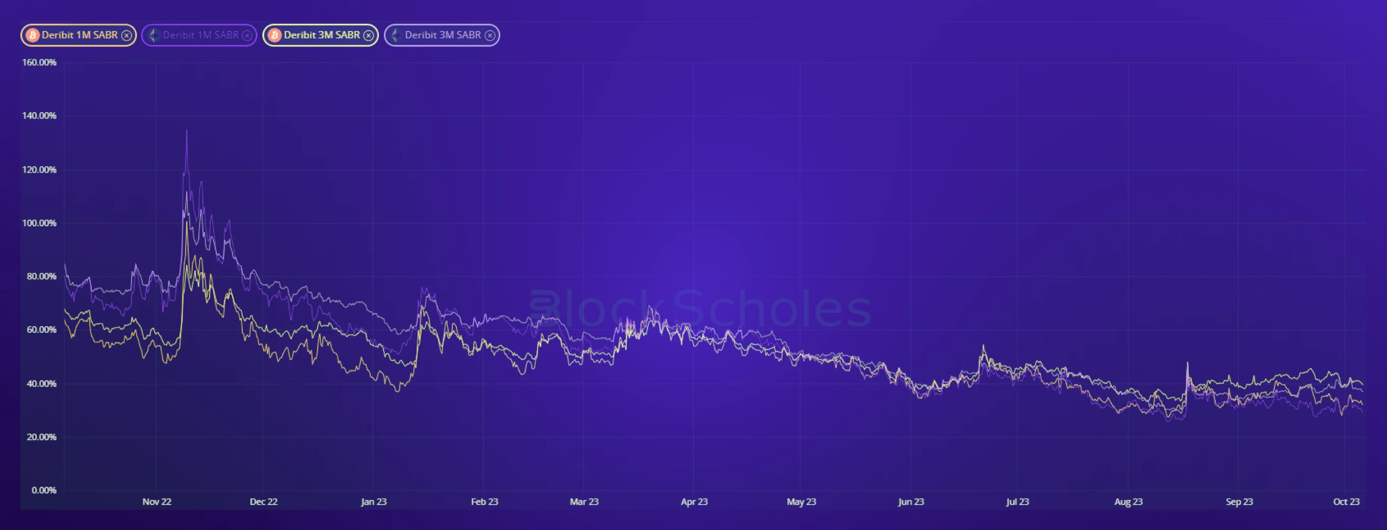 Delayed spot ETF decision dates, strong Binance and Huobi FUD, and acceptance of the “higher-forlonger” rates message have done little to return volatility expectations to the highs to which we have become accustomed. While each of these factors has had the potential to dominate narratives, no one sentiment has won out as attention now shifts to the trial of FTX founder SBF.