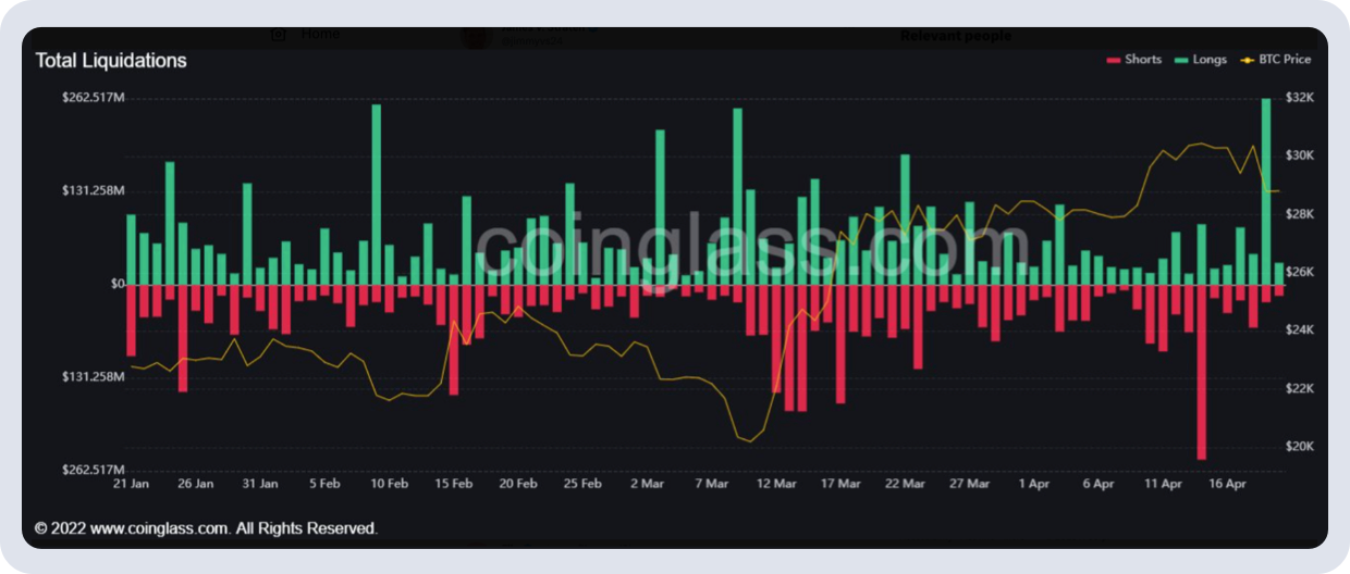 BTC, ETH, and broad risk ran out of steam in a somewhat perplexing week, lacking a clear driver. Flows consequently dominated, and unexplained persistent selling of BTC triggered long liquidations and a full unwind of the prior week's well-won gains. Indeed, Wednesday saw the biggest long liquidation event this year, according to Coinglass, with circa $262.5 mio positions liquidated👇.