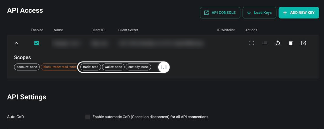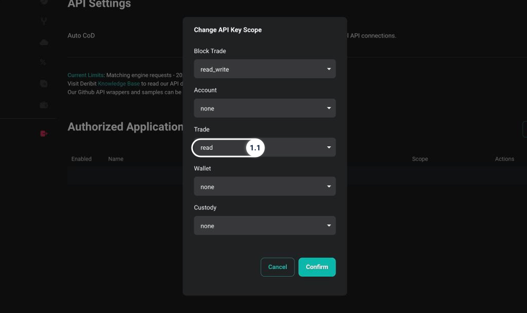 1.1. Deribit: Enable Trade: read-only scope for your API key.