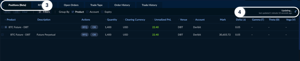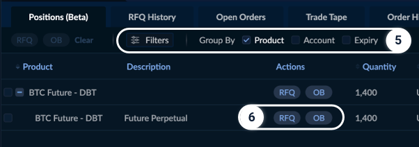 You can also create an RFQ or Complex Order Book directly from your positions using RFQ and OB buttons.